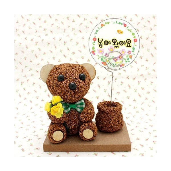 콜크클레이공예꽃을든곰돌이메모꽂이